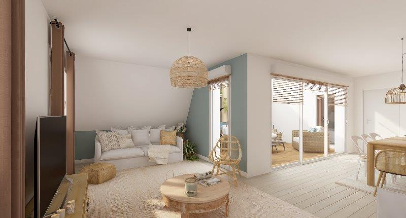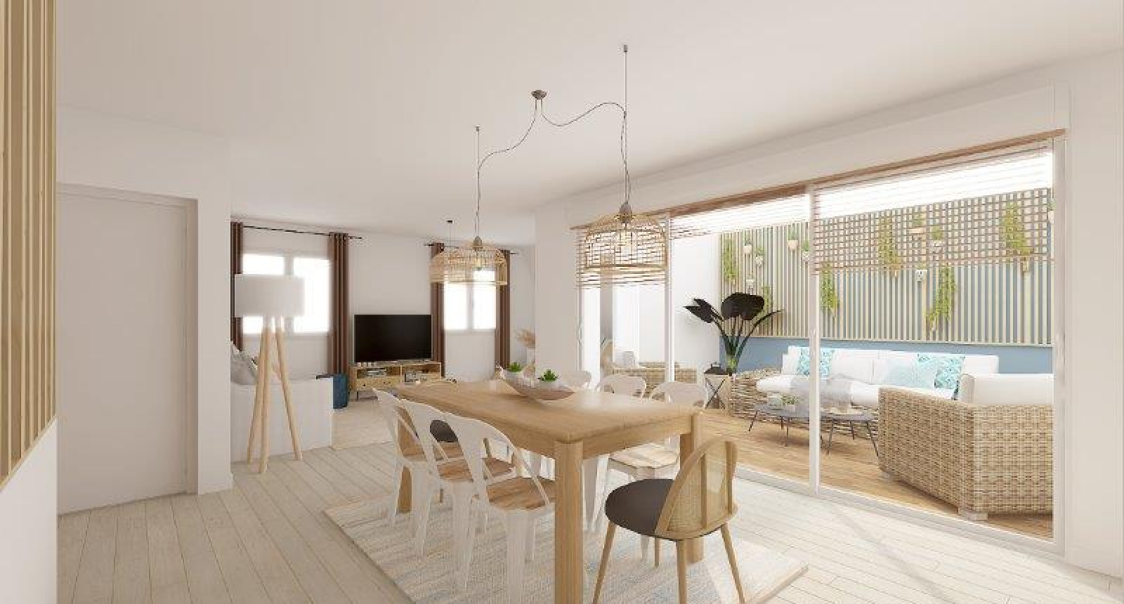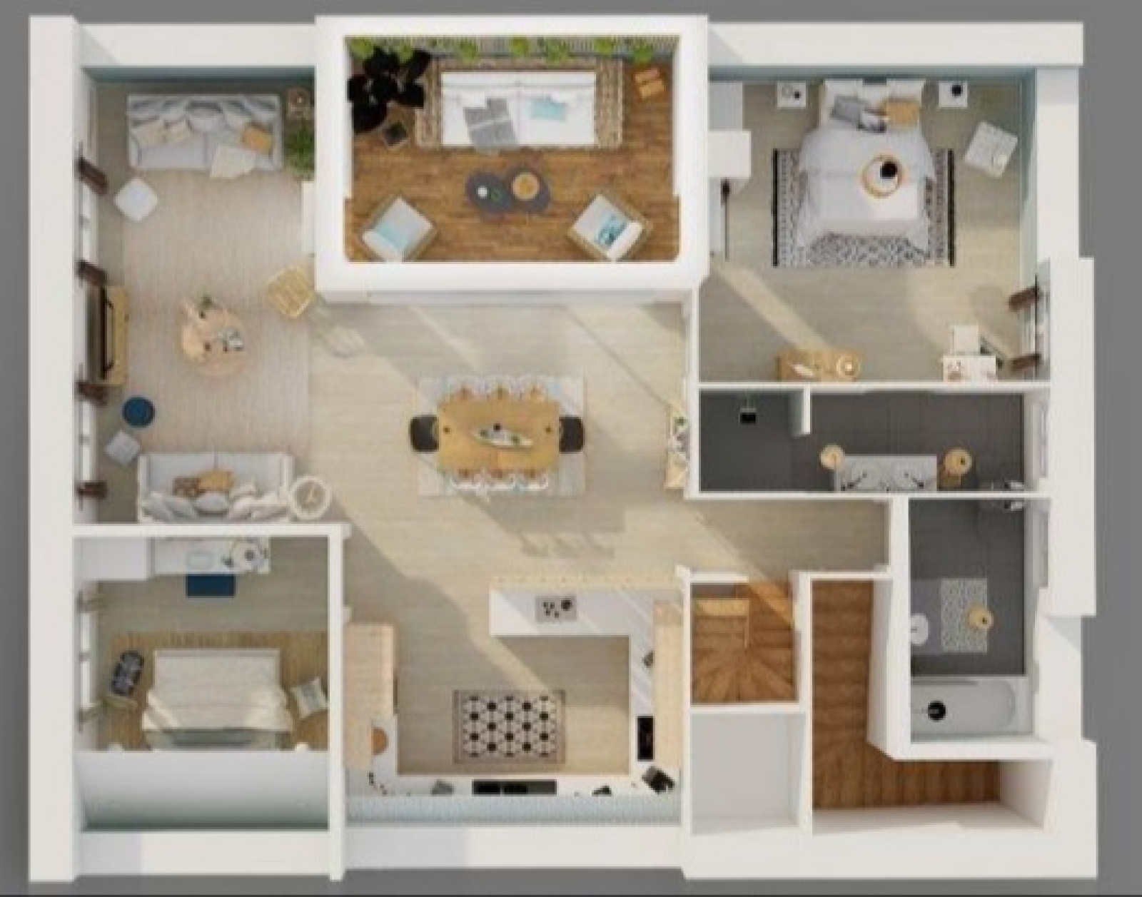 Appartement de 135 m² au sol, 4 chambres, pièce de vie de 50 m² sur terrasse patio, parking et grande cave.