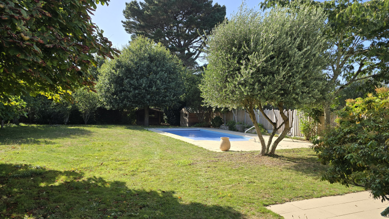 Au coeur d'un jardin arboré et fleuri, cette maison de 2003 en parfait état dispose de 4 chambres dont une en rez-de-chaussée, séjour cuisine ouverte 40m² et véranda 20m².