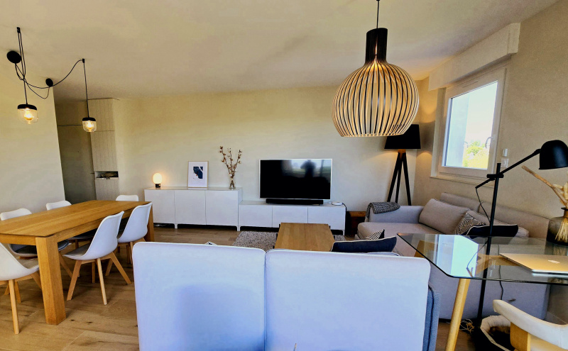 Au calme.Dans une Résidence de standing, sécurisée, superbe appartement de 2 chambres en état proche du neuf avec terrasse sud sans vis à vis, séjour cuisine ouverte 33 m². 73 m² au sol. Vendu avec parking et garage.